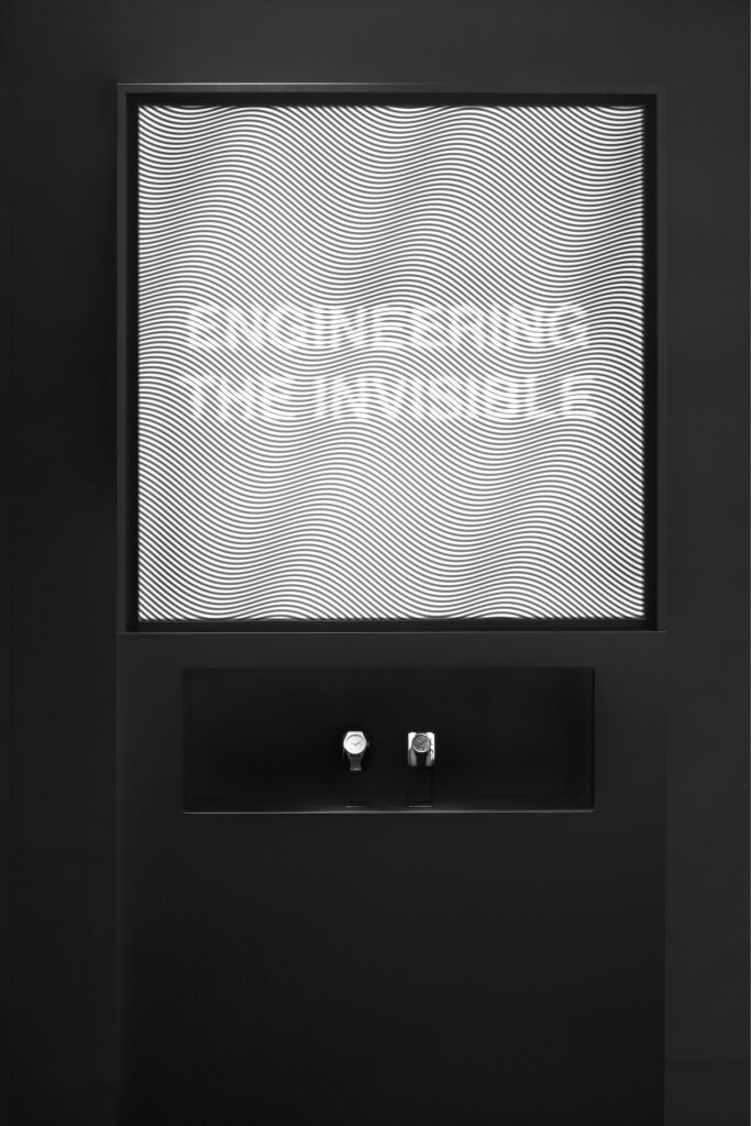 Through a striking black-and-white optical work, Crespi transforms the boutique into a space where art, design and watchmaking converge. A hidden message in the interplay of light and contrast, perceptible only through careful observation, captures the paradox at the heart of watchmaking.