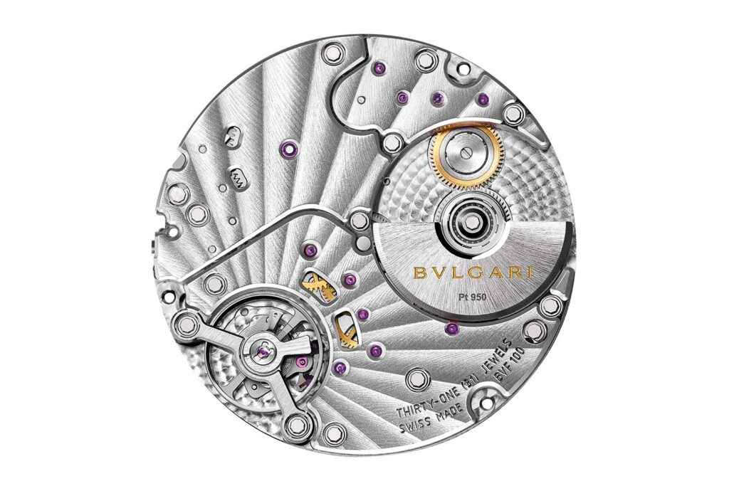 2.35mm per lo spessore, 31mm per il diametro: sono questi i numeri del nuovo calibro automatico BVF 100, progettato e sviluppato interamente in-house nella Manifattura Bvlgari. È dotato di micro-rotore e garantisce una riserva di carica di 72 ore, mantenendo quindi un’autonomia pienamente contemporanea nonostante la riduzione delle dimensioni.