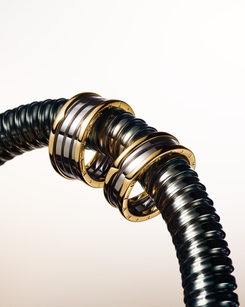Tra le altre novità, la collezione femminile Serpentisi amplia, accogliendo altri pezzi, tra cui due nuovi anelli B.zero1 – la cui iconica spirale viene reinterpretata in acciaio – e una parure Bvlgari Tubogas che invece proseguono il dialogo già iniziato tra oro e acciaio.