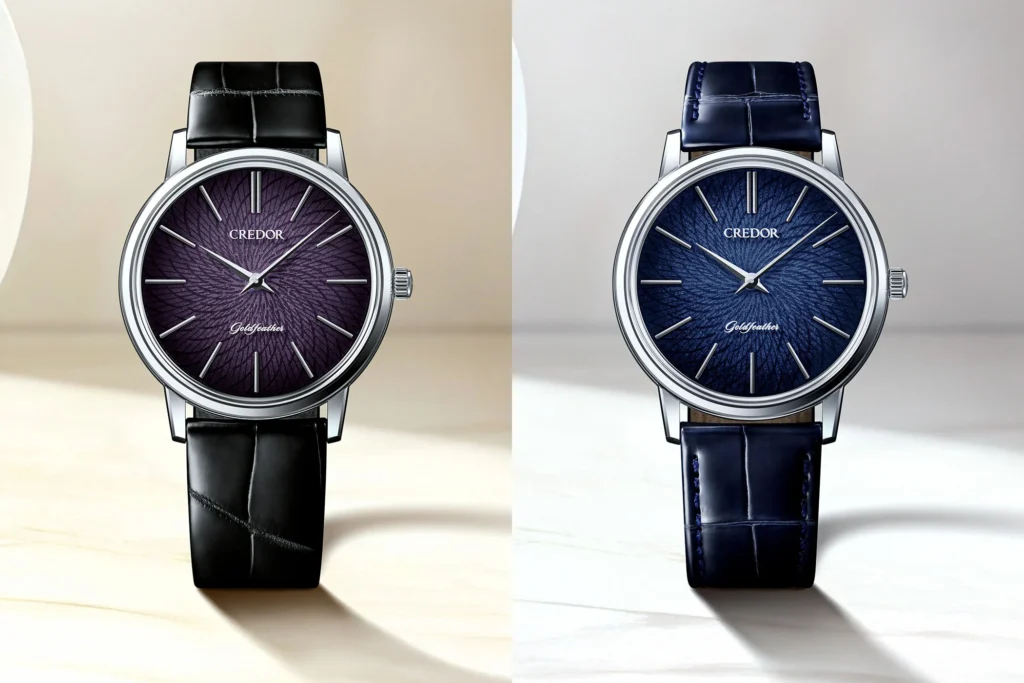 Presentati nel 2025 da Credor, i Credor Goldfeather GBBY969 e GBBY971 montano quadranti in smalto basse-taille realizzati dall’atelier giapponese Ando Cloisonné: una base in argento incisa a bassorilievo viene ricoperta da strati di smalto traslucido, cotti più volte in forno. Il tutto è racchiuso in una cassa in platino 950 da 37,4 mm e animato dal calibro manuale ultra-sottile 6890 da 1,98 mm di spessore.