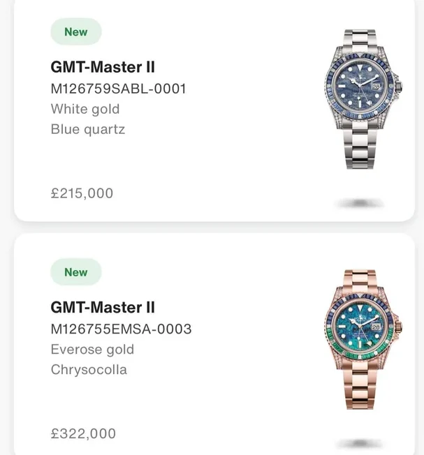 Le referenze GMT-Master II presentate, portano il discorso verso livelli ancora più elevati. Il quarzo blu su cassa in oro bianco e la crisocolla su Everose definiscono oggetti che si collocano al confine tra orologeria e pezzi “espositivi” da collezione. In questi casi, la funzione lascia spazio alla presenza, alla rarità del materiale e alla sua resa estetica.