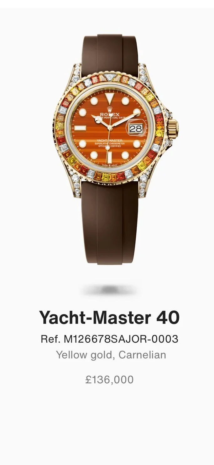 Il nuovo Yacht-Master 40 in oro giallo con uno stupendo quadrante in corniola introduce una tonalità calda e profonda, dove la pietra diventa protagonista assoluta.