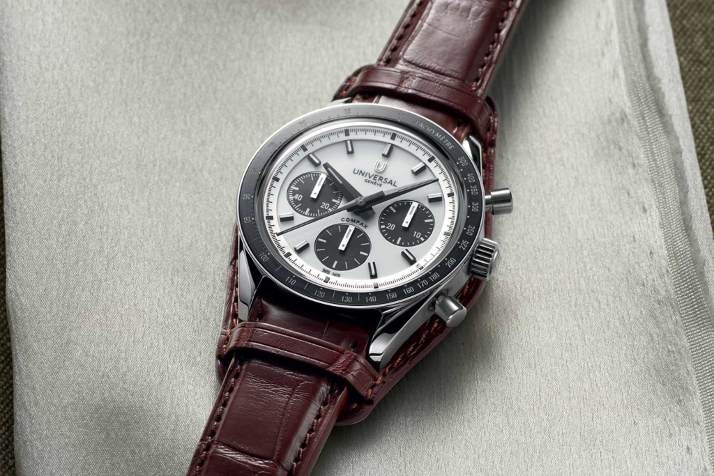 Dalla prestigiosa sede di Rue du Rhône, Universal Genève diede vita ad alcuni dei segnatempo più iconici e apprezzati del XX secolo. Tra questi spiccano il Polerouter, il Compax e il Cabriolet (inizialmente noto come Ideo, uno dei primi esempi di orologio da polso reversibile).