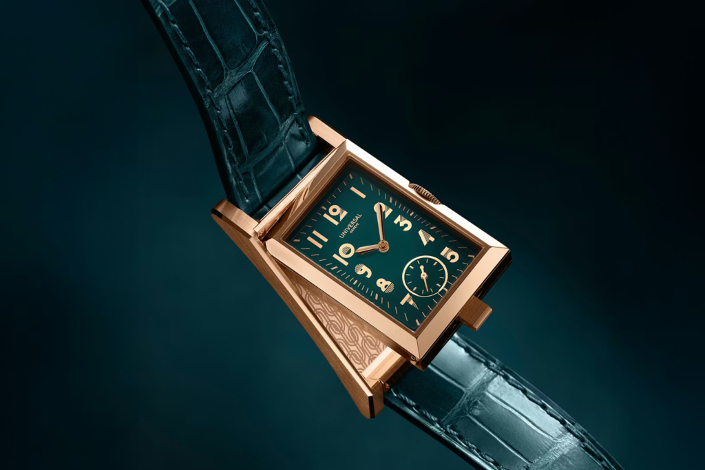 Un momento cruciale nella sua evoluzione si ebbe nel 1932, quando Raoul Perret ne assunse la direzione. Guidato da una visione lungimirante, introdusse un approccio pionieristico fondato sull’integrazione tra progettazione estetica e sviluppo tecnico, istituendo un dipartimento di design interno. Fu questa scelta a delineare in modo netto l’identità della Universal Genève, sintetizzata nell’espressione “Le Couturier de la Montre“. Sotto la sua guida, l’azienda intraprese un percorso di espansione internazionale, costruendo le basi per alcune delle sue creazioni più emblematiche.