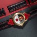 La metà inferiore è dedicata alla lettura del tempo. Le incisioni decorative, i simboli di buon auspicio (Buona Fortuna e Amore in cinese) e la dicitura Millennium in caratteri cinesi neri vengono ripresi senza razionalizzazioni grafiche, mantenendo quella leggera irregolarità e l’anima massimalista che caratterizzava l’orologio originale, mescolandosi ai numeri arabi e romani circoscritti al piccolo quadrante rosso che ospita lancette a gladio per ore e minuti.