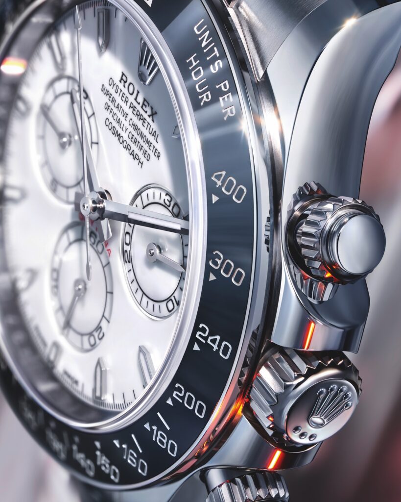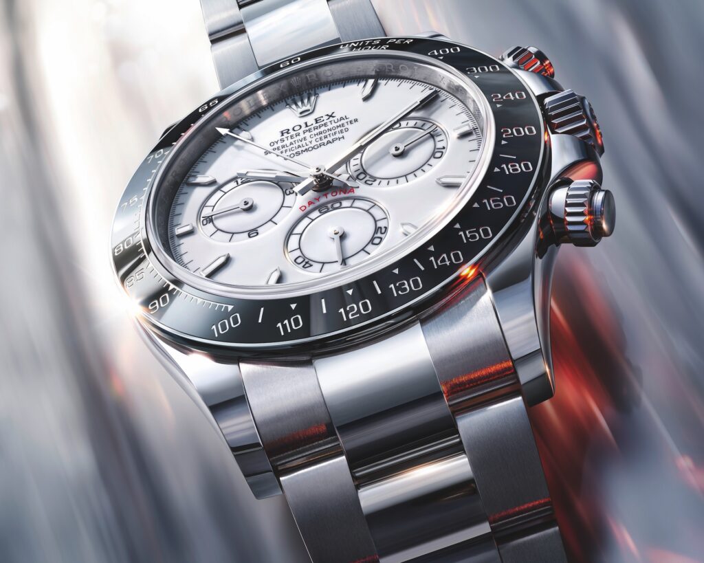 The Oyster Perpetual Cosmograph Daytona is offered in a new and exclusive configuration: the Rolesium version, a combination of Oystersteel and platinum.