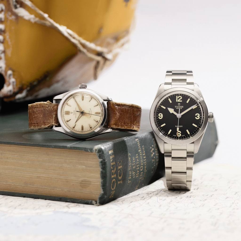 In the 1950s, the Tudor Ranger became a symbol of endurance and reliability in extreme environments. The British North Greenland Expedition, between 1952 and 1954, used Tudor watches such as the Oyster Prince Ref. 7808, known for its sturdiness. The philosophy of the Tudor “exploration” watch was consolidated in those years, offering models that were practical, solid, and reasonably priced.